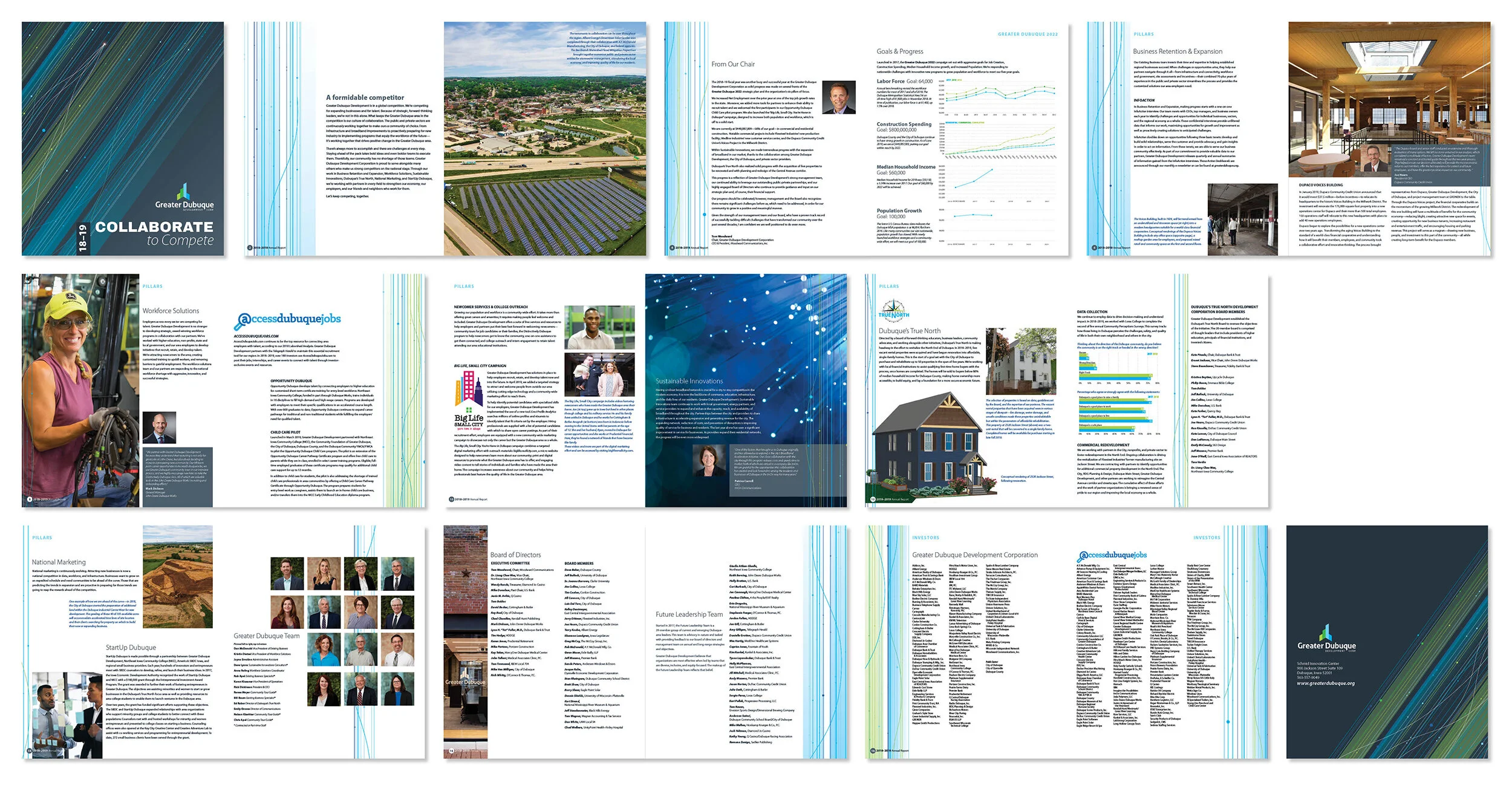Used both as an update for investors as well as a promotional piece, the Greater Dubuque Development Annual Report is sent to approximately 2,000 community leaders and business owners each year.